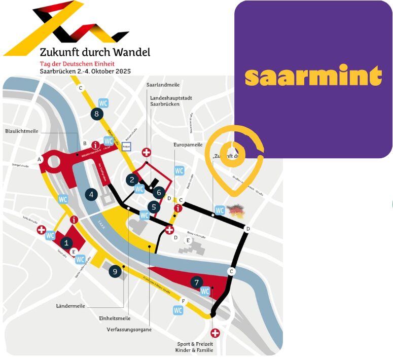 Du findest uns am Saarland-Treffpunkt auf der Zukunft-durch-Wandel-Meile. Mainzer Hof 26.